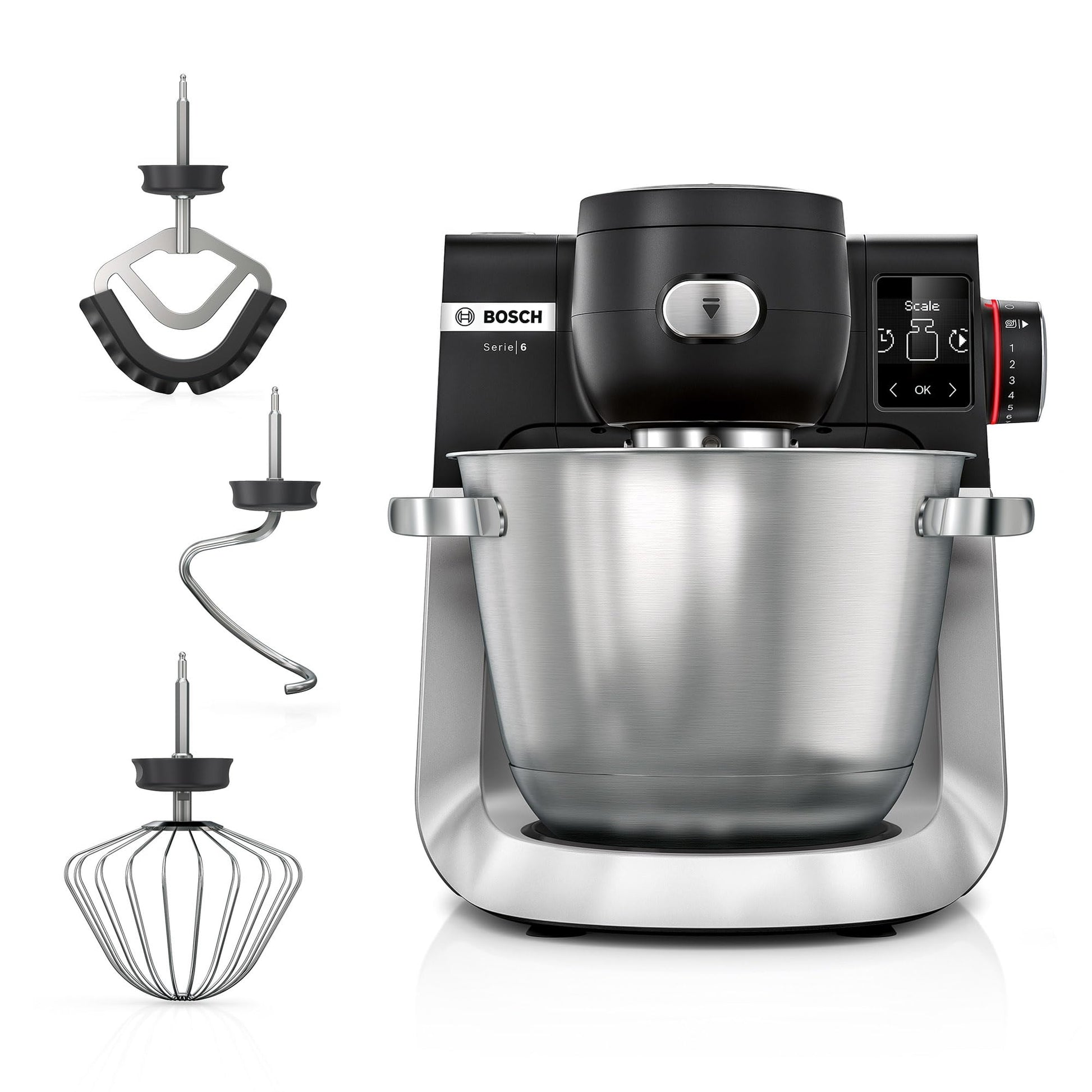 Bosch Series 6 MUMS6ZM00G Stand Mixer with Intelligent Sensing Technology and Integrated Scale, Professional Patisserie Set Included, 1600W. Black/Silver Stainless Steel