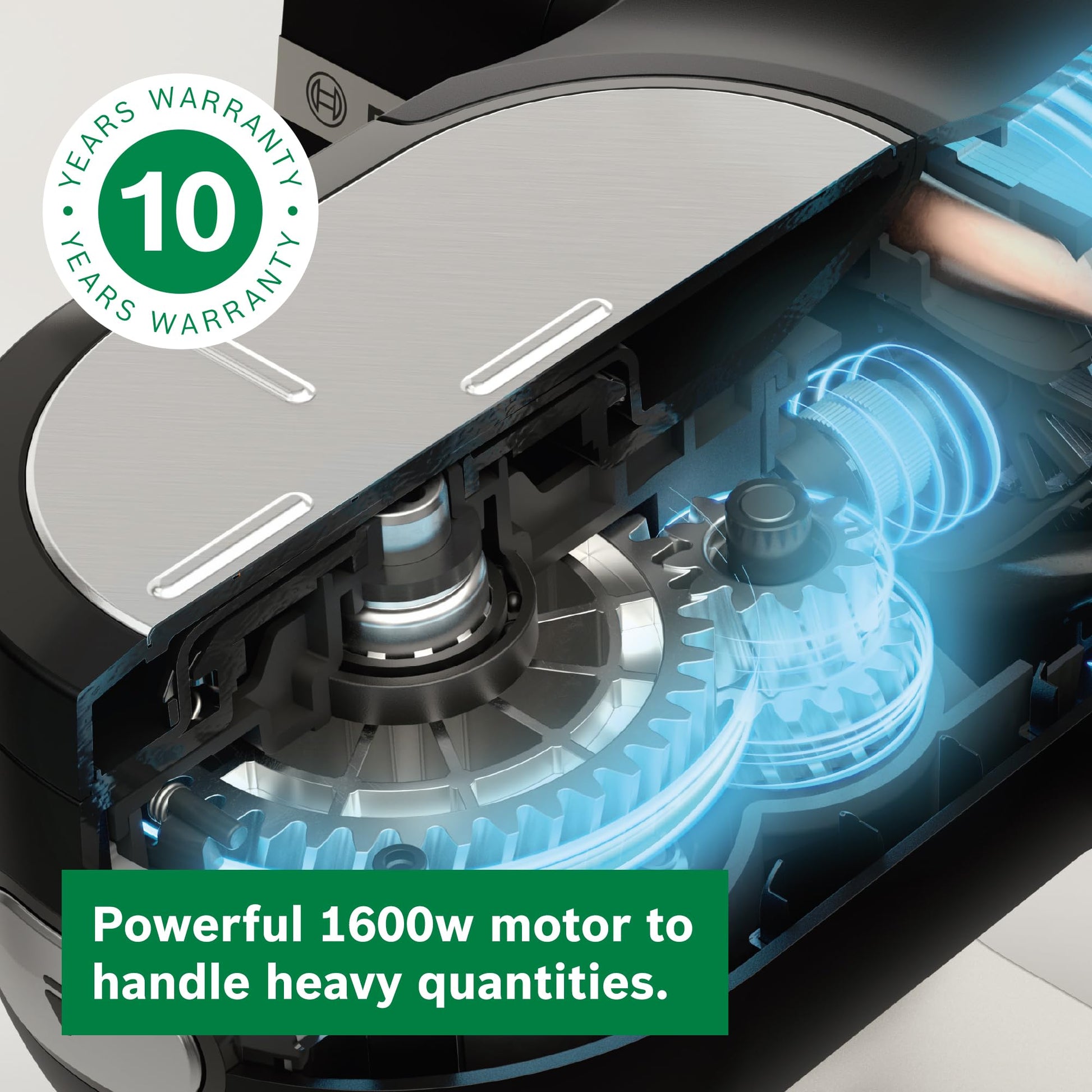 - POWERFUL 1600W MOTOR: Suitable for mixing large quantities and heavier dough. The unique Air Cooling technology ensures several hours of use with minimal noise. You can rely on your Bosch Series 6 stand mixer time and time again