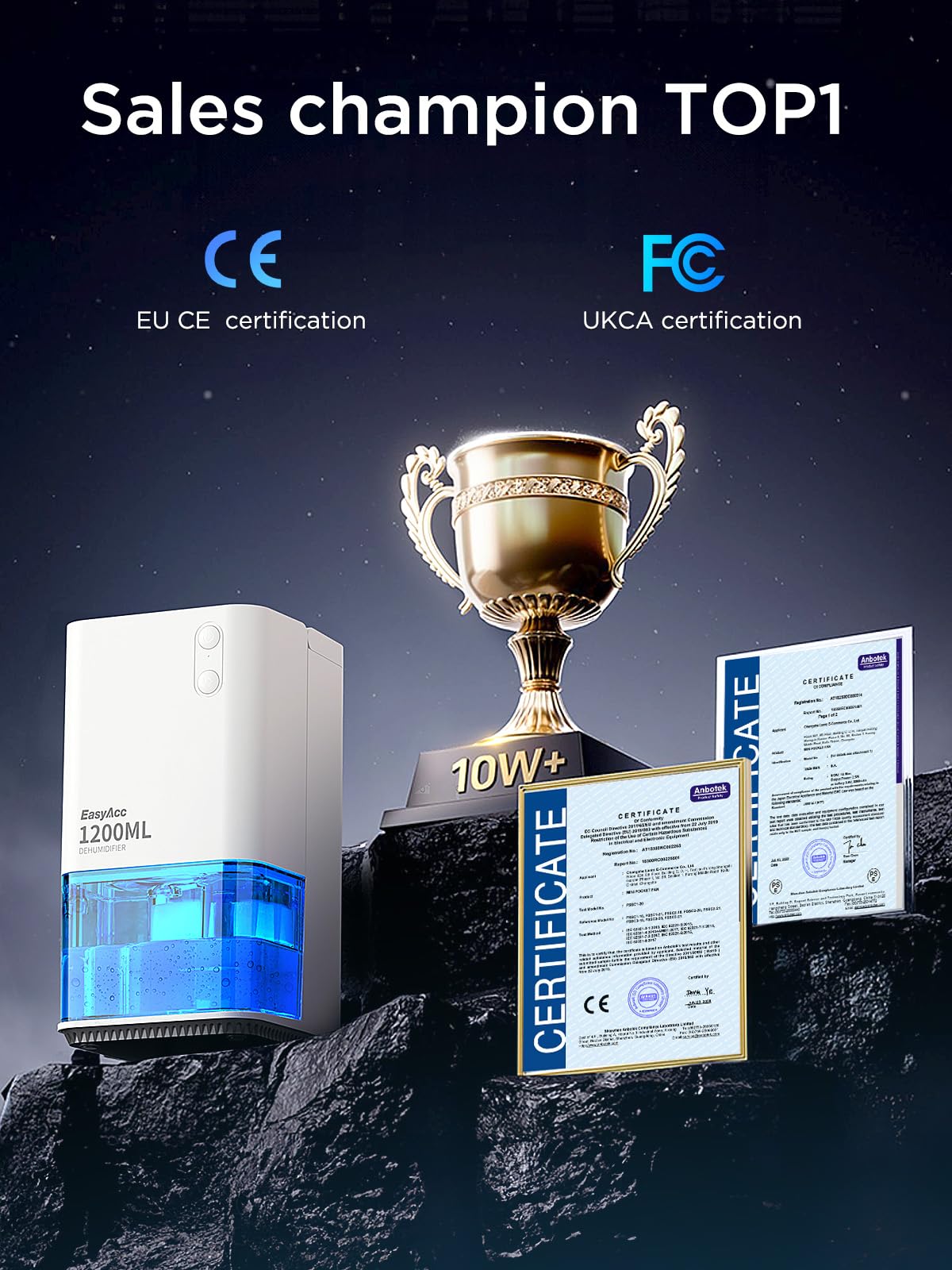 EasyAcc 1200ml Portable Electric Dehumidifier – Quiet, Auto Shut-Off, White