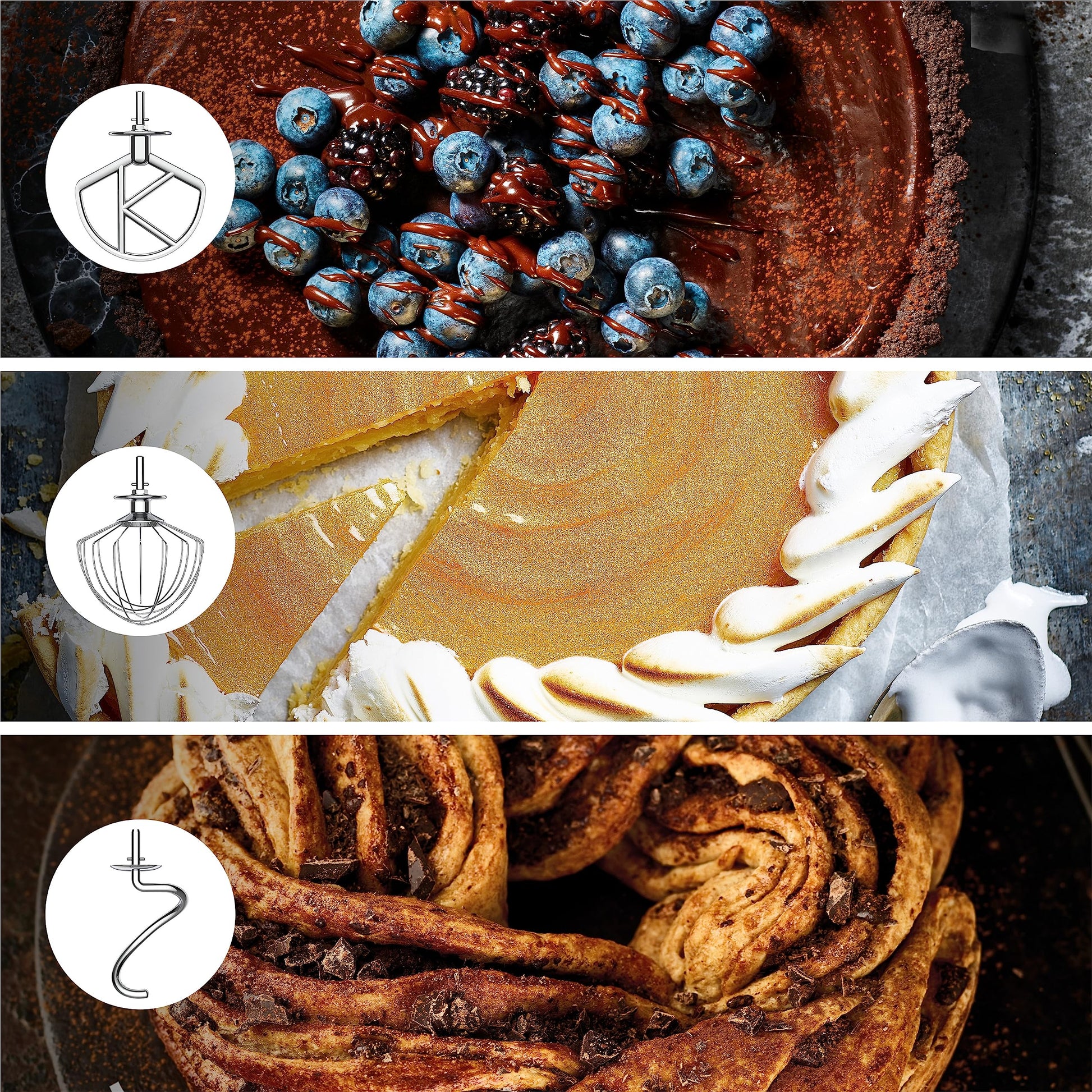 - NON-STICK BAKING A full set of non-stick baking tools including the K-beater, balloon whisk and the dough hook, making baking bread and mixing cake batter, easy and stress free