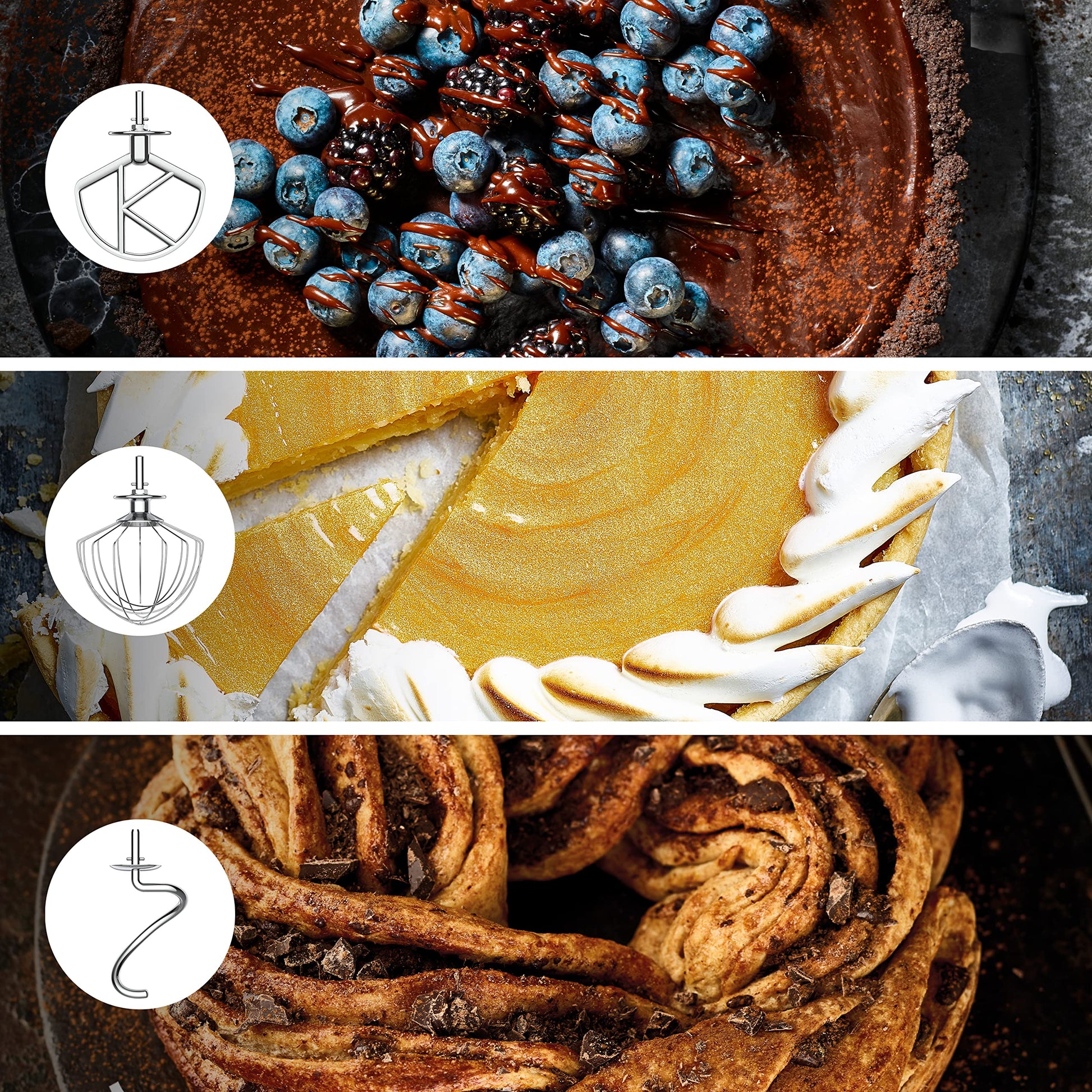 - NON-STICK BAKING: A full set of non-stick baking tools including the K-beater, balloon whisk and the dough hook, making baking bread and mixing cake batter, easy and stress free