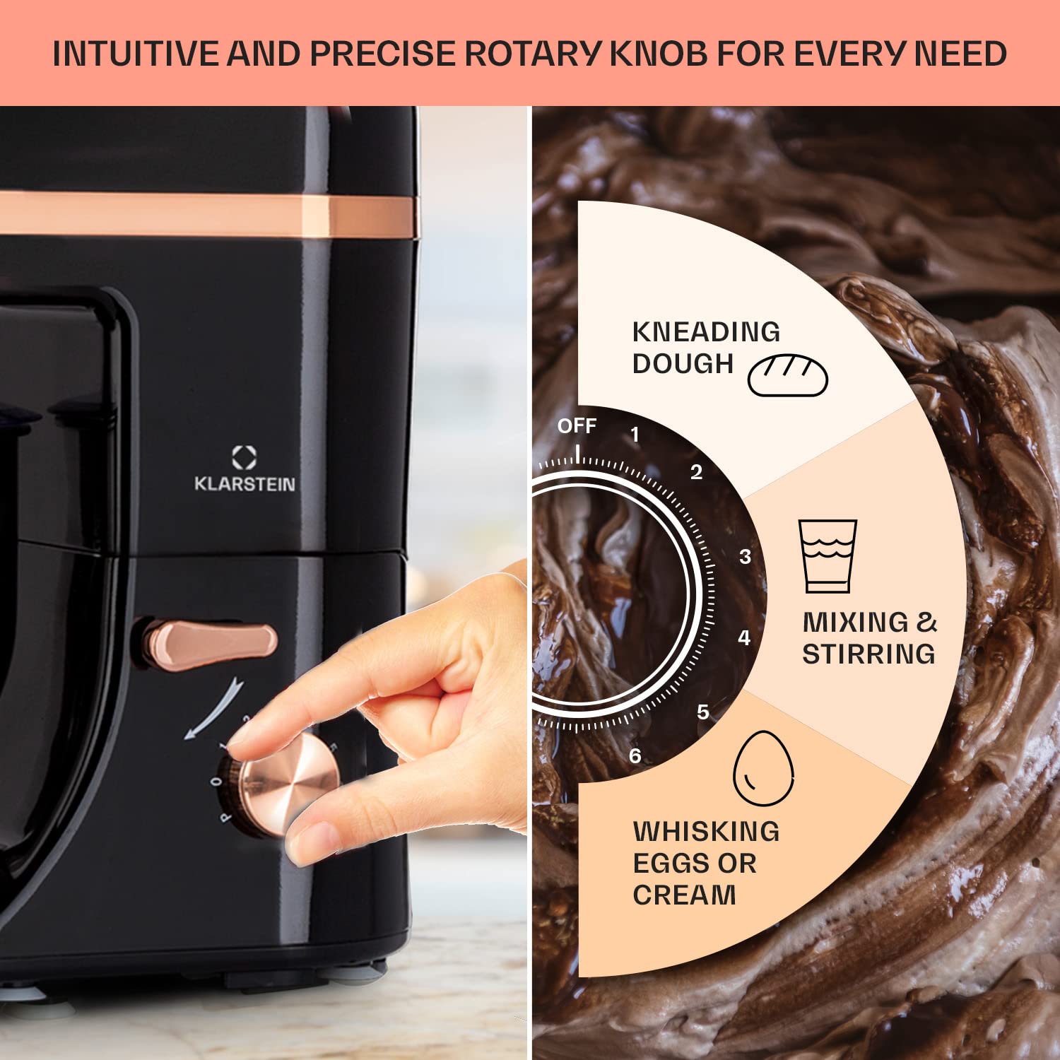 - POWERFUL: Variety is the name of the game in your kitchen, because these mixers for baking can do almost everything in just one device! With a powerful 1800 watts and 6 speeds, the Klarstein Lucia cake mixer processes ingredients like no other.